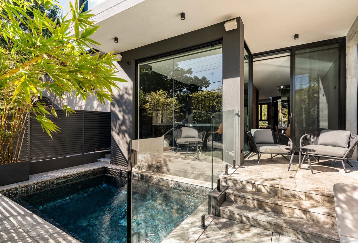 Once you step inside The Arc Bondi Beach, by Pinnacle Design Architects, you will see the serene Polished concrete floors and exposed brickwork deliver a sleek industrial feel with whole-floor living space featuring a streamlined Black Tempal entertainer's kitchen opening out to a travertine terrace and sparkling plunge pool finished with Black Russian mosaic tiles. The Arc Bondi Beach has modern interiors, contemporary furnishings and a timeless design. All four bedrooms are positioned on the upper level, the master with an ensuite, with internal access to a double lock-up garage plus additional driveway parking for guests.